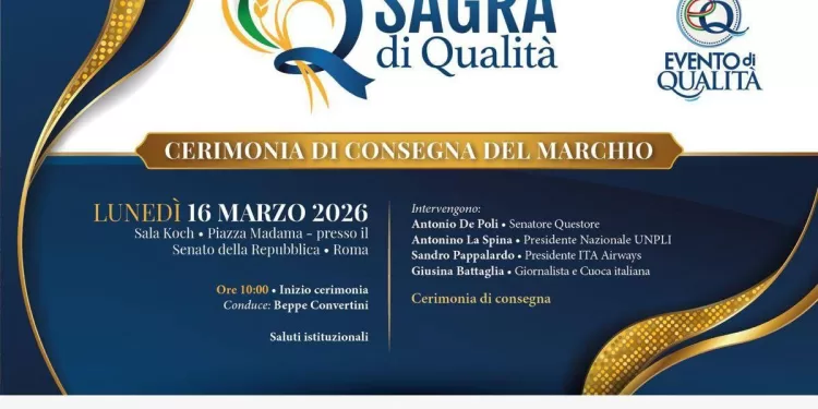 (Adnkronos) – L’Unione Nazionale delle Pro Loco d’Italia rinnova il suo impegno nella valorizzazione delle tradizioni, delle produzioni tipiche e del patrimonio culturale materiale e immateriale italiano attraverso l’assegnazione dei marchi ‘Sagra di Qualità’ ed ‘Evento di Qualità’. La cerimonia di consegna inizierà domenica 15 marzo all’Ergife Hotel con un evento condotto da Matilde Brandi e Beppe Convertini, aperto a tutti i volontari coinvolti e proseguirà lunedì 16 marzo in Senato, nella sala Koch, dove saranno 44 le Sagre di Qualità e 21 gli Eventi di Qualità, oltre a 3 menzioni speciali, che verranno insigniti del marchio, coinvolgendo ben 15 regioni.