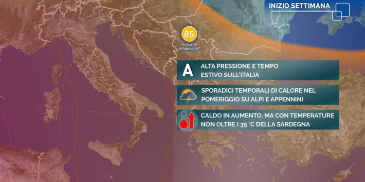 Il clima sarà pienamente estivo, con temperature in aumento soprattutto da giovedì, quando il nucleo più rovente della massa d’aria in risalita dal Nord Africa – al momento posizionato sulla Penisola Iberica – dovrebbe coinvolgere più direttamente il nostro Paese. I maggiori scostamenti dalla norma si osserveranno nei settori occidentali dell’Italia (Nord-Ovest, Sardegna, regioni centrali tirreniche).