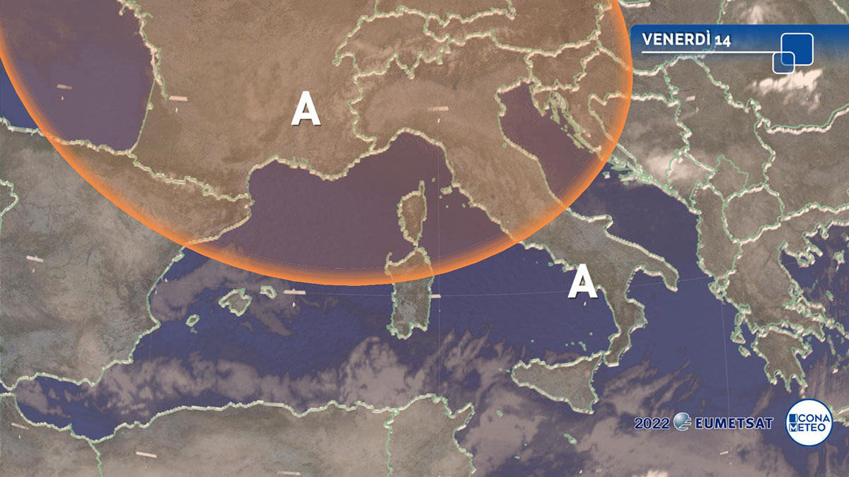 Sull’Italia e sul bacino del Mediterraneo la pressione è in aumento a causa dell’espansione di un potente anticiclone che, dall’Europa nord-occidentale, tende ora a spostare il proprio baricentro sulle regioni nord alpine e ad inglobare tutta la nostra Penisola, comprese le estreme regioni meridionali, rimaste inizialmente ancora ai margini.