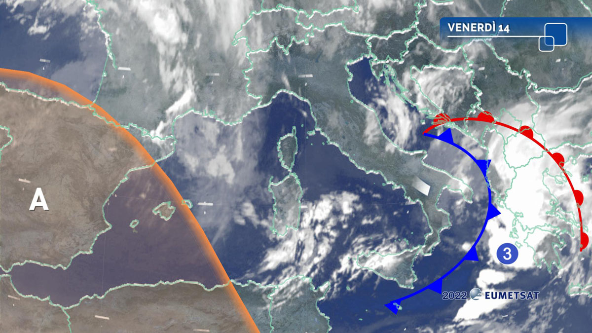 L’intensa perturbazione che giovedì ha attraversato il centro-sud (la n. 3 del mese di ottobre) si è allontanata con la sua parte più attiva in direzione della Grecia, favorendo un miglioramento quasi ovunque, a parte ancora residue piogge possibili all’estremo sud. Il Nord Italia sarà attraversato da un debole sistema nuvoloso (perturbazione n. 4), che porterà al più qualche debole e locale pioggia sui settori alpini di confine. Le temperature, dopo il calo di ieri, sono previste in lieve rialzo al Centro-Sud.