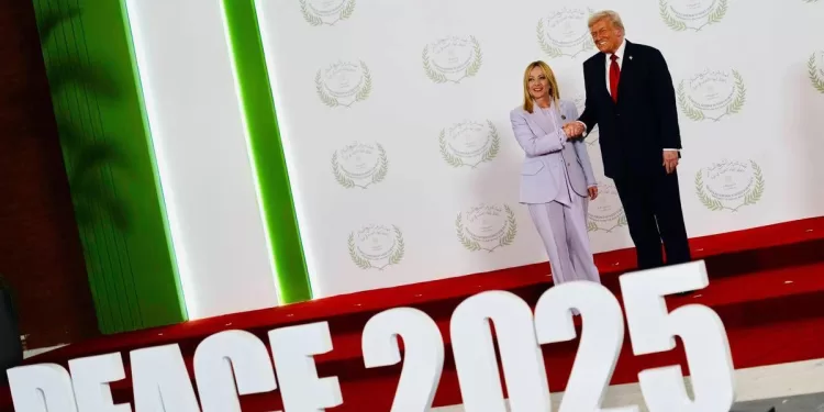 In primo piano, la grande scritta a caratteri cubitali ‘Peace 2025’ incornicia la scena ma somiglia a un auspicio. Un augurio che Meloni e gli altri leader sperano possa tradursi in una pace duratura e solida. Il percorso, ammette Meloni, è ancora lungo, ma la prospettiva resta quella “dei due Stati”. E il rispetto degli accordi siglati oggi, aggiunge, avvicina il riconoscimento dello Stato palestinese da parte dell’Italia, quando si verificheranno “le condizioni poste anche dal Parlamento” con l’ultima risoluzione della maggioranza.