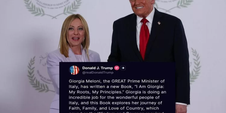 (Adnkronos) – Donald Trump continua a lusingare Giorgia Meloni. Dopo i complimenti sul suo aspetto fisico – “È bellissima” – ieri a Sharm el Sheikh, il presidente degli Stati Uniti, su Truth, loda la nostra premier per il suo libro. “Giorgia Meloni, la grande (in maiuscolo, ndr) presidente del Consiglio dell’Italia, ha scritto un nuovo libro, ‘Io sono Giorgia: le mie radici, i miei principi’ – inizia the Donald -. Giorgia sta facendo un incredibile lavoro per le meravigliose persone dell’Italia, e questo libro esplora il suo percorso di fede, famiglia e amore per la patria, che le hanno dato la saggezza e il coraggio necessari per servire la sua nazione e rendere orgoglioso il suo popolo”. “Lei è un’ispirazione per tutti”, conclude Trump.