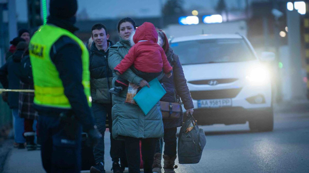Qui da giorni si riversano migliaia di profughi -quasi esclusivamente donne e bambini, gli unici autorizzati a lasciare il Paese, oltre agli uomini ultrasessantenni- un esodo impressionante e ordinato che parte principalmente da Leopoli, la più grande città dell’Ucraina occidentale. Il silenzio della colonna, surreale, è rotto solamente dagli ordini dei militari. A qualche decina di metri dal confine, associazioni di volontariato locali e internazionali hanno predisposto un campo di emergenza per offrire cibo, bevande calde e un po’ di riposo ai profughi che giungono stremati, spesso dopo giorni di attesa in coda, aspettando il via libera per l’ingresso in Polonia. Un gazebo all’interno del centro accoglie le madri che attraversano il confine con neonati al seguito, un rifugio per allattare e cambiare i piccoli. La maggior parte delle persone che si aggirano per il campo hanno attraversato la frontiera solo con un trolley.
