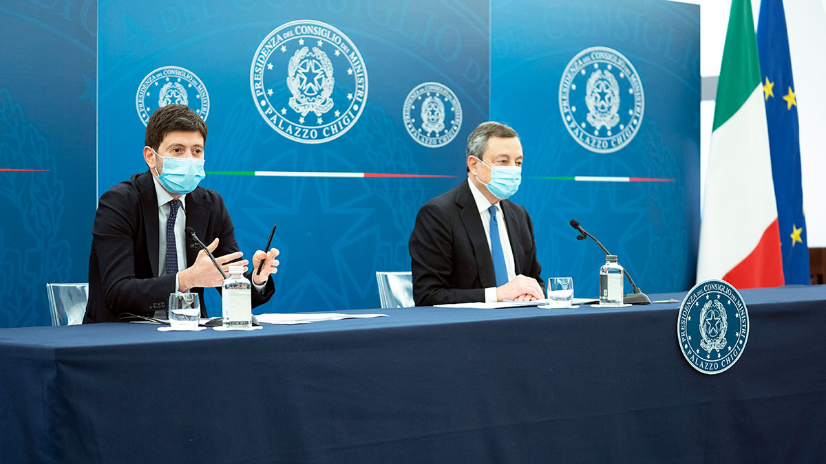 Il Presidente Mario Draghi e il Ministro della Salute, Roberto Speranza. Licenza CC-BY-NC-SA 3.0 IT