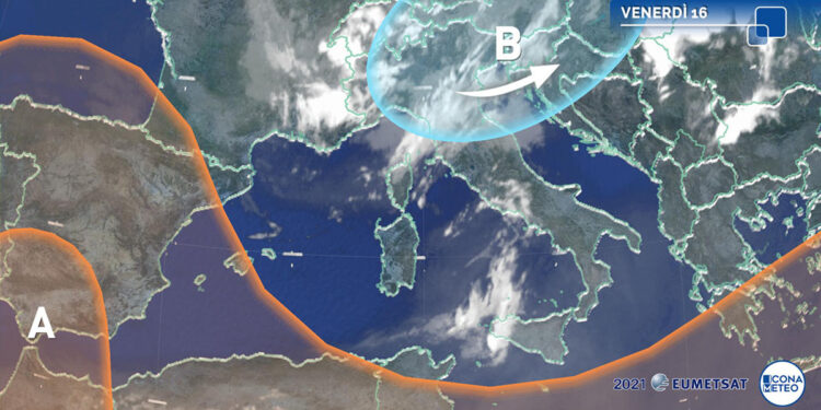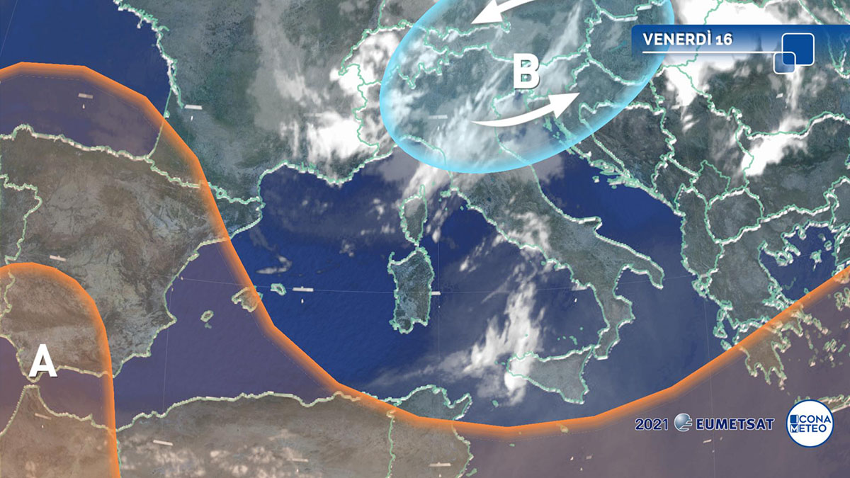 La circolazione ciclonica e di aria fresca e instabile sta raggiungendo le regioni centro settentrionali italiane, dove l’instabilità atmosferica ed il rischio di temporali tendono quindi ad aumentare. Al Sud e sulle Isole le temperature si sono finalmente riavvicinate ai valori medi e può considerarsi cessata l’ondata di caldo. Domani l’area ciclonica continuerà a muoversi verso sud e pertanto anche su molti settori del Meridione vi sarà l’occasione per lo sviluppo di precipitazioni di origine convettiva. A rischio rovesci localmente intensi – avvertono i meteorologi di iconameteo.it -, saranno anche le regioni centrali adriatiche mentre sul Nord-Ovest il tempo diverrà stabile e più caldo.