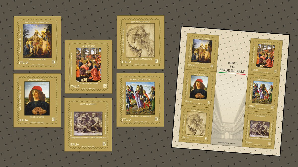 Ieri sono stati emessi dal Ministero delle Imprese e del Made in Italy sei francobolli ordinari appartenenti alla serie tematica “il Patrimonio artistico e culturale italiano”, dedicati alle Radici del Made in Italy: la Bottega del Verrocchio, Botticelli, Leonardo da Vinci, Ghirlandaio, Botticini, Signorelli (nel 500° anniversario della scomparsa), relativo al valore della tariffa B pari a €1,25 per ciascun francobollo.