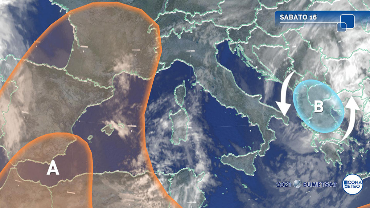 Temperature in rialzo, ma ancora sotto la media nelle massime in gran parte del Centro-Sud. Valori pomeridiani tra 16 e 21 gradi, con locali punte di 22-24 gradi su Calabria e Isole.