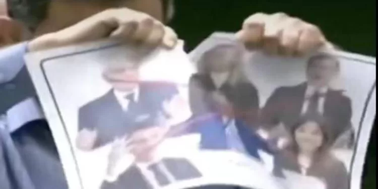Nel video che riprende il suo gesto, trasmesso da Memri tv, si vede che sul foglio strappato compaiono tra gli altri le immagini del cancelliere tedesco Friedrich Merz, del presidente francese Emmanuel Macron, della presidente del Parlamento europeo Roberta Metsola e del re di Spagna Filippo VI. Presente anche la fotografia della europarlamentare leghista Isabella Tovaglieri, che giorni fa aveva strappato al Parlamento europeo una immagine della Guida Suprema iraniana Ali Khamenei.