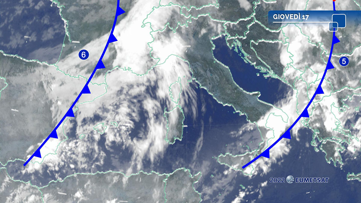 La perturbazione atlantica che ieri ha attraversato la nostra penisola sta abbandonando anche le estreme regioni meridionali. Le veloci correnti occidentali che soffiano ad alta quota apportano temporaneamente masse d’aria meno umide e ancora miti, ma già entro sera un altro sistema perturbato in arrivo dalla Francia si affaccerà sull’Italia. Anche questa nuova perturbazione sarà veloce ed entro la fine di venerdì avrà oltrepassato l’Italia, dopo aver dato origine a piogge soprattutto sul lato occidentale della penisola.