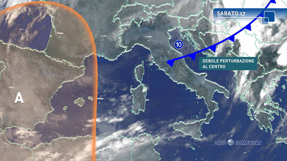 Temperature minime in calo, eccetto sulle isole, con valori leggermente sottozero al nord; valori massimi in leggero calo al centro-sud, in lieve rialzo sulle aree alpine.