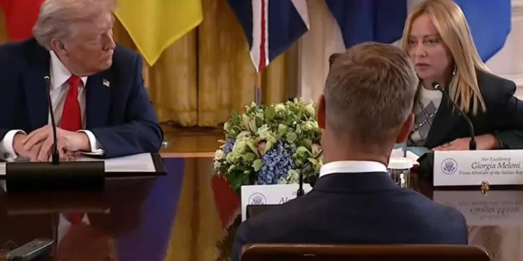 E prendendo la parola, prima del vertice con i leader europei alla Casa Bianca la premier si è rivolta a Trump assicurando che “può contare sull’Italia”.
