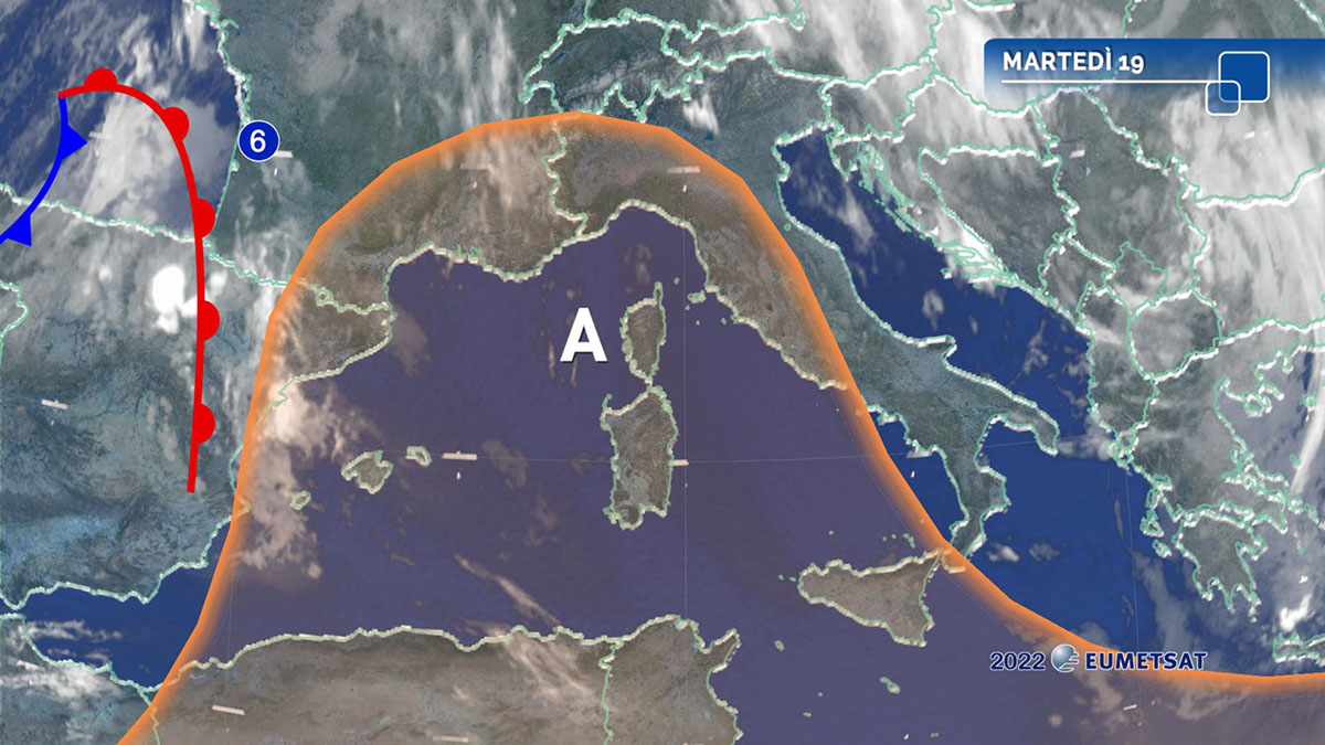 Oggi, martedì 19 aprile, la giornata sarà caratterizzata da tempo soleggiato su buona parte del Paese; i venti tenderanno a disporsi da sud e si osserverà un generale aumento delle temperature. Dal pomeriggio un nucleo di aria instabile sfiorerà l’estremo Nordest. Domani, mercoledì, una circolazione ciclonica proveniente dalla penisola iberica avanzerà sul Mediterraneo occidentale e lo Scirocco si intensificherà nuovamente sulle isole maggiori. Nel corso della giornata saranno possibili poche deboli precipitazioni principalmente sulla Liguria centrale, sul sudovest del Piemonte e in Sardegna.