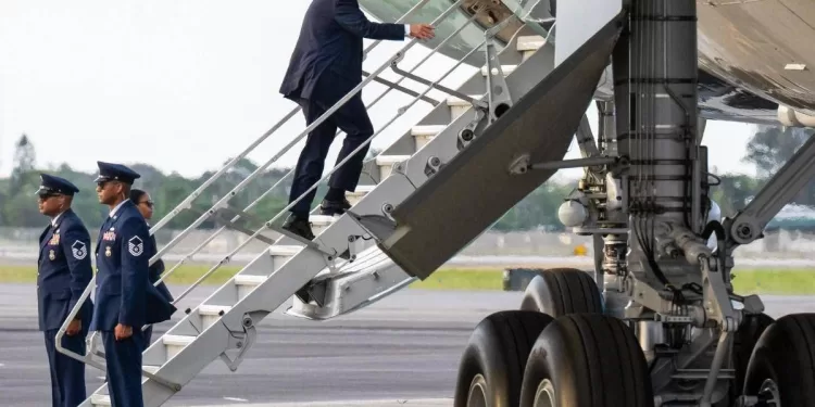 I giornalisti che viaggiavano con il Presidente hanno riferito che Trump è dovuto salire sul jet Air Force One in fretta per assicurarsi che ci fosse una minima esposizione alla minaccia.