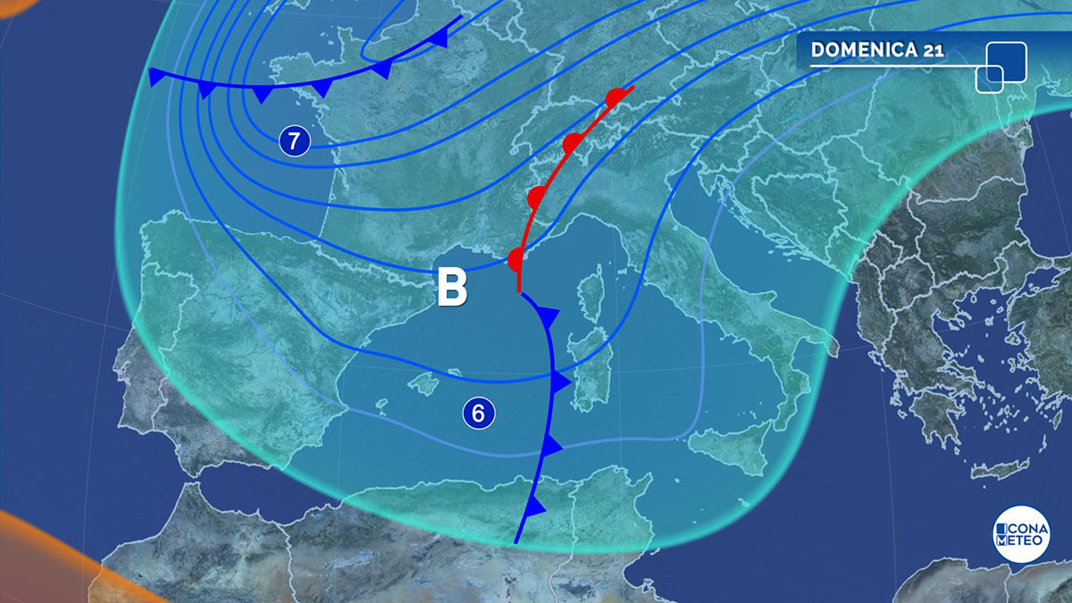 Nel pomeriggio insistono le precipitazioni sul Nord-Ovest, attenuandosi sul Ponente Ligure; rovesci e possibili temporali su Toscana, Lazio e Campania, in locale estensione verso le regioni centrali adriatiche, specie sulle Marche la sera. In serata qualche rovescio possibile anche sulla Sicilia occidentale.