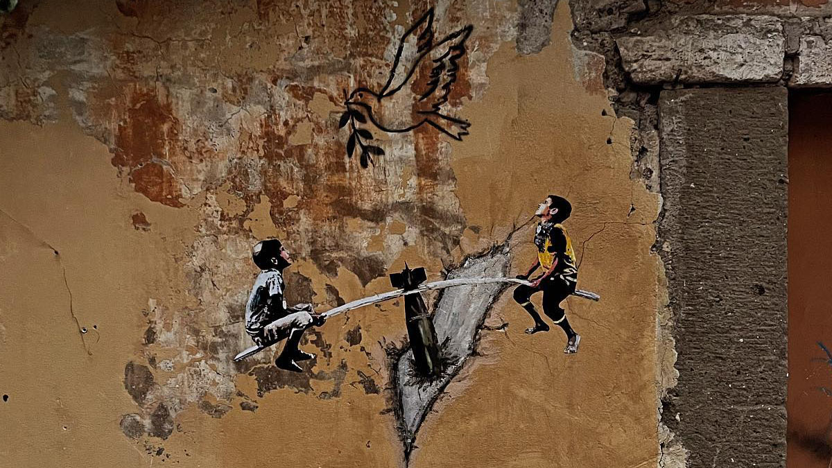 Lo street artist, di cui non si conosce l’identità, è noto per le sue opere murarie che raccontano gli avvenimenti più importanti dei nostri tempi. Con questo nuovo lavoro, Greb vuole lanciare un messaggio di pace per la regione del Medio Oriente, che da decenni è teatro di conflitti.