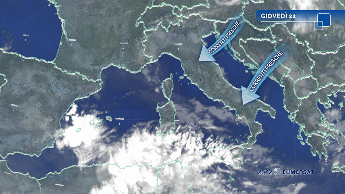 Temperature: su valori leggermente inferiori alle medie stagionali e in ulteriore lieve calo sul Lazio, al Sud e nelle Isole maggiori; in leggero rialzo al nord-ovest. Massime pomeridiane fra 19 e 22 gradi al nord e sul versante adriatico, 20-24 gradi sulle regioni tirreniche e ioniche, punte di 25-26 in Sardegna e Sicilia. Venti: deboli o localmente moderati da nord o nord-est al Centro-Sud, fino a tesi di Tramontana sul Canale d’Otranto e sul mar Ionio; venti deboli al nord. Mari: mossi il basso Adriatico, lo Ionio, il Tirreno centro-occidentale e il Ligure occidentale; fino a molto mosso il basso Ionio al largo; localmente mossi il medio Adriatico, lo Stretto di Sicilia e il Canale di Sardegna; per lo più poco mossi gli altri settori.