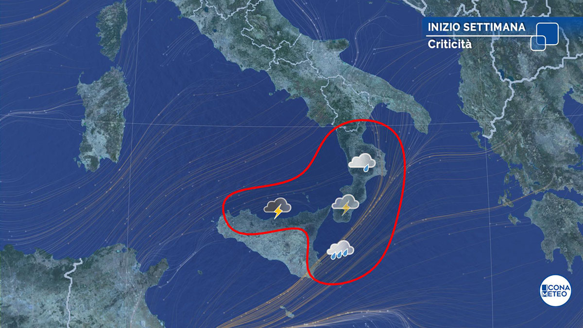 Maltempo insistente all’estremo Sud, in particolare fra Sicilia e Calabria con rovesci e temporali intensi specie nei settori ionici dove non si escludono eventuali criticità. Nubi compatte anche nel resto del Sud, nelle zone vicine del Centro e in Sardegna, con piogge o rovesci su Campania e Basilicata, e in forma più isolata anche su Puglia, basso Lazio e Sardegna orientale. Tempo più stabile nel resto d’Italia, con delle velature in transito e qualche addensamento sul resto del Centro e in Emilia Romagna. Alla sera possibile estensione delle piogge alle regioni centrali adriatiche, Lazio, Umbria e Romagna.