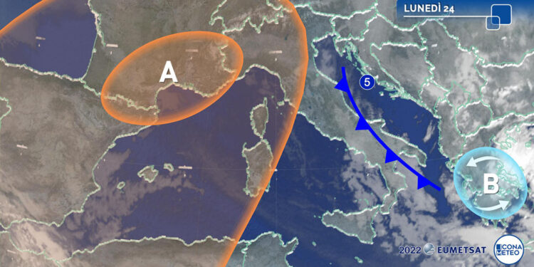 La circolazione ciclonica centrata sulla penisola balcanica, colma di aria gelida discesa fino all’Egeo (oggi e domani probabile neve anche ad Atene), ha indirizzato nelle ultime ore un debole fronte freddo (perturbazione n. 5) in direzione della nostra penisola dove le deboli precipitazioni isolate tra il medio Adriatico e il Sud risultano nevose fino a quote basse. Il conseguente raffreddamento, con temperature sotto le medie stagionali, è accentuato anche da una moderata ventilazione nord-orientale. L’alta pressione- affermano i meteorologi di IconaMeteo.it – attualmente centrata tra l’Inghilterra e l’Europa centrale estende già la sua influenza sulle nostre regioni settentrionali dove la conseguente stabilità si traduce nella formazione delle nebbie in pianura. Tra domani e giovedì l’Anticiclone si estenderà ulteriormente verso sud abbracciando gradualmente anche il Centro-Sud dove si smorzeranno gli afflussi di aria fredda proveniente dai Balcani. La massa d’aria quindi si mitigherà con conseguente rialzo delle temperature verso valori più normali.