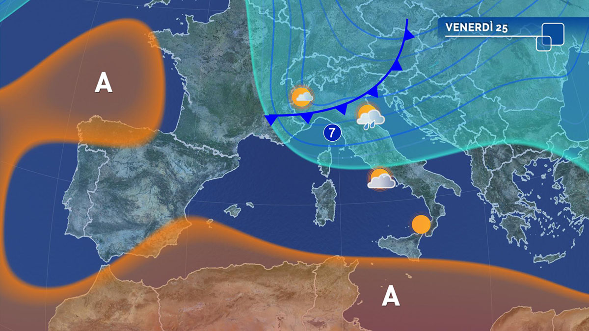 Non si escludono locali temporali sulla pianura padana centrale e in Toscana. Quota neve inizialmente intorno ai 900-1400 metri su Alpi e nord Appennino, ma in calo nel corso della sera fino ad arrivare a quote collinari.