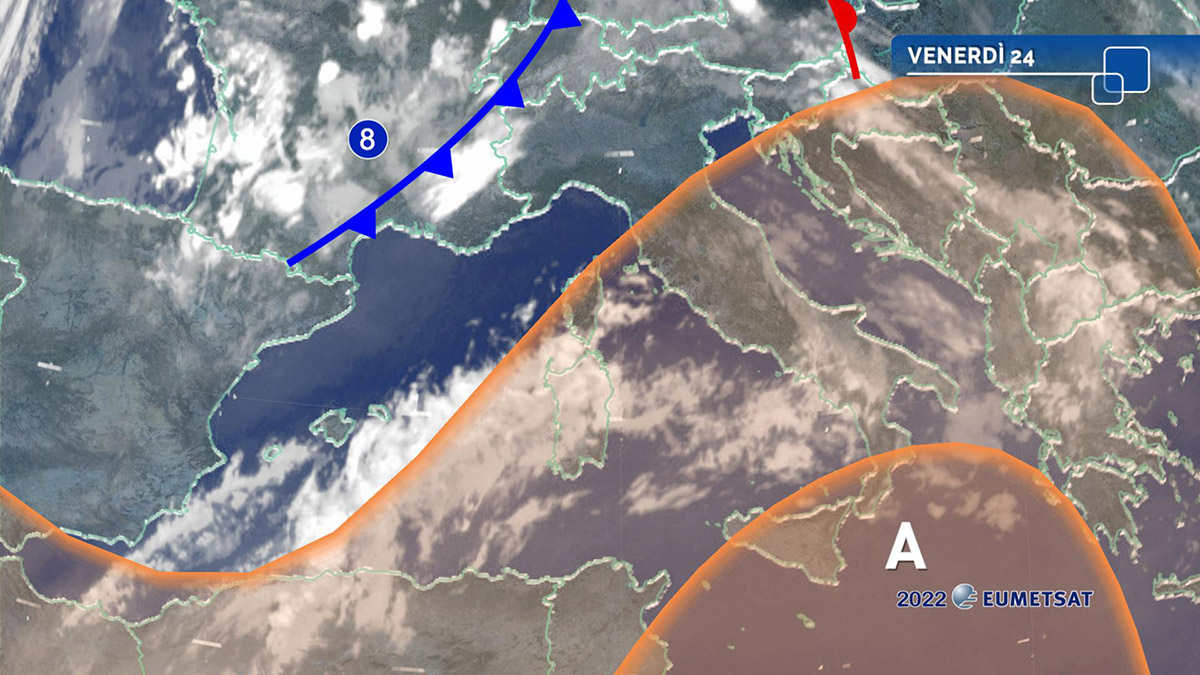 Il temporaneo e parziale indebolimento dell’anticiclone nord africano iniziato giovedì, coincide con il passaggio di una perturbazione (n.8 di giugno) che in questo venerdì determinerà condizioni di instabilità su parte del Nord, in particolare su Alpi, Piemonte, Lombardia e Friuli dove saranno possibili rovesci e temporali, in miglioramento fra la sera e la notte. La banda nuvolosa in scorrimento fra la Sardegna, le regioni centrali e parte del Sud insisterà anche nella giornata di sabato, ma associata a scarso rischio di precipitazioni, salvo qualche breve piovasco fra Sardegna e Centro. Un temporaneo calo termico al Centro-Nord favorirà, fra oggi e domani, una breve pausa dalla calura mentre il caldo intenso continuerà e insistere al Sud e in Sicilia dove saranno ancora possibili punte ben oltre i 35 gradi e localmente fino a 40 gradi, specie sull’isola.