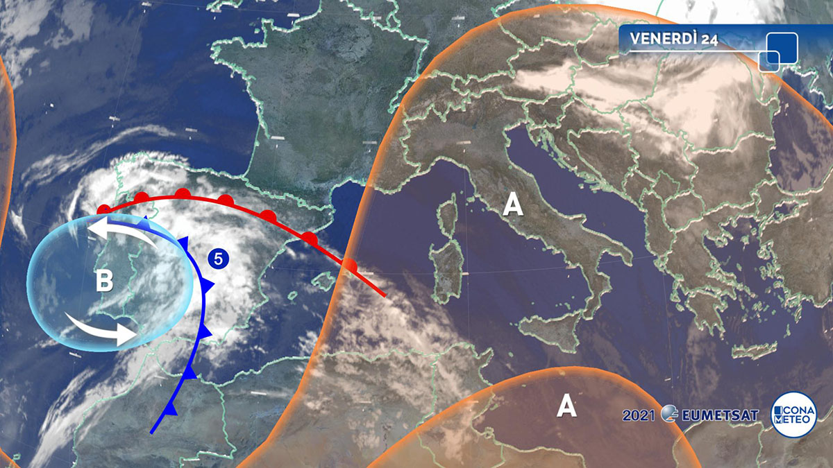 Tempo in peggioramento al Nord e parte del Centro a causa dell’arrivo di una perturbazione dal sud della Francia. Al mattino piogge sparse anche a carattere di rovescio o temporale al Nord-Ovest e sull’alta Toscana; un po’ di nuvole al Nord-Est, regioni centrali tirreniche e Isole; maggiori schiarite nel resto del Paese. Nel pomeriggio precipitazioni in estensione a Veneto occidentale, Emilia, Trentino Alto-Adige, Toscana centrale e, in serata, anche al Friuli. Fenomeni localmente intensi soprattutto su Liguria, Toscana e settori alpini e prealpini centrali.