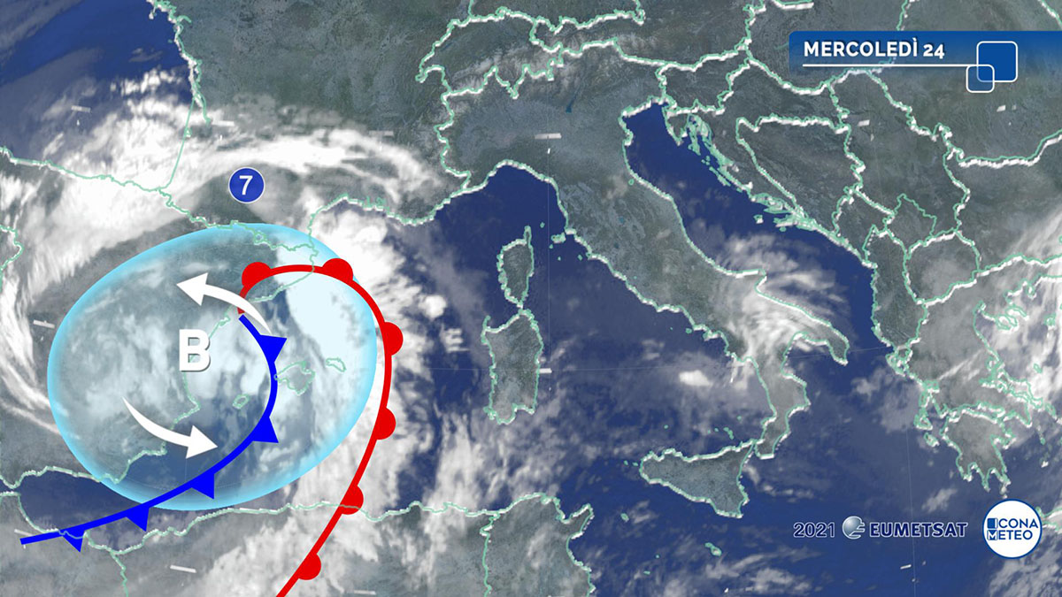 Possibili fenomeni intensi, anche temporaleschi, su Lazio, Calabria, Sicilia, Sardegna e, in serata, su Lucania e Puglia meridionale; piogge localmente abbondanti al mattino anche su Liguria, basso Piemonte e Toscana, in serata sul Friuli Venezia Giulia. Neve oltre i 1100-1500 metri sulle Alpi centro-orientali, a quote più basse su Alpi occidentali, Cuneese e Appennino ligure dove la neve, al mattino, potrà scendere fino agli 800-1000 metri.