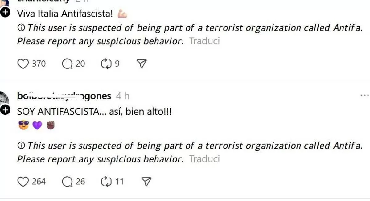 (Adnkronos) – “Questo utente è sospettato di far parte di un’organizzazione terroristica chiamata Antifa. Per favore segnala ogni comportamento sospetto”. È l’avviso che da oggi, giovedì 25 settembre, è iniziato a comparire sotto alcuni post sul social di Meta ‘Threads’.