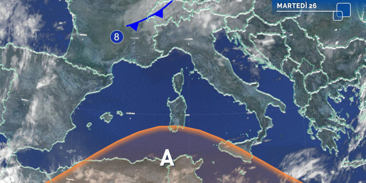 Temperature massime senza grandi variazioni, al più in lieve calo al Nord e in lieve aumento al Centro-Sud: valori per lo più compresi fra 17 e 22 gradi, con locali punte più elevate in Calabria, Sicilia e Sardegna.