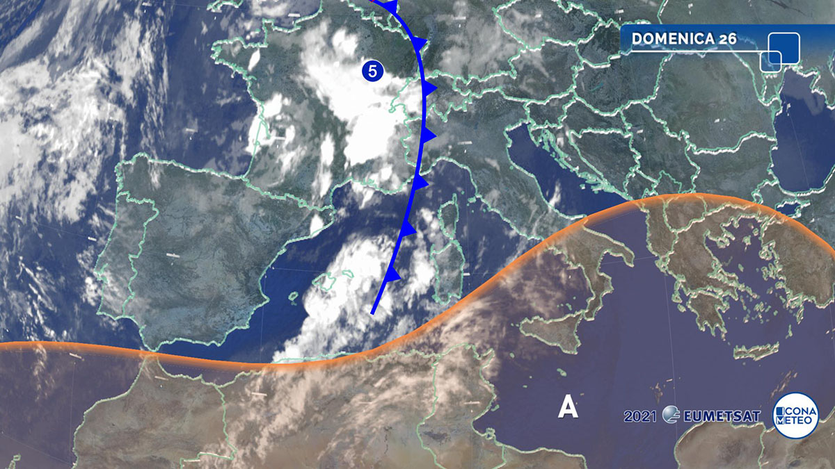 Al Nord, sulle regioni centrali tirreniche, sulla Sardegna e sulla Sicilia meridionale tempo abbastanza soleggiato. Nel pomeriggio modesti addensamenti in sviluppo attorno ai rilievi e nubi alte in arrivo al Nordovest. Tendenza a peggioramento in serata, con sviluppo di rovesci o temporali su Piemonte e Lombardia.