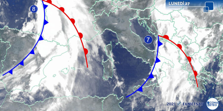 Domani, martedì, gli strascichi di questo passaggio determineranno le ultime piogge al Sud e nel nordest della Sicilia. La ventilazione si disporrà da nordovest con afflusso di aria leggermente più fresca sul Meridione. Ammassi nuvolosi in transito oltralpe lambiranno anche i nostri rilievi del Nord. In particolare un fronte caldo, tra la serata di domani e la giornata di mercoledì – affermano i meteorologi di IconaMeteo.it -, potrà determinare fenomeni anche moderati lungo le creste alpine di confine ma con limite della neve decisamente elevato, ben al di sopra dei 2000 metri.