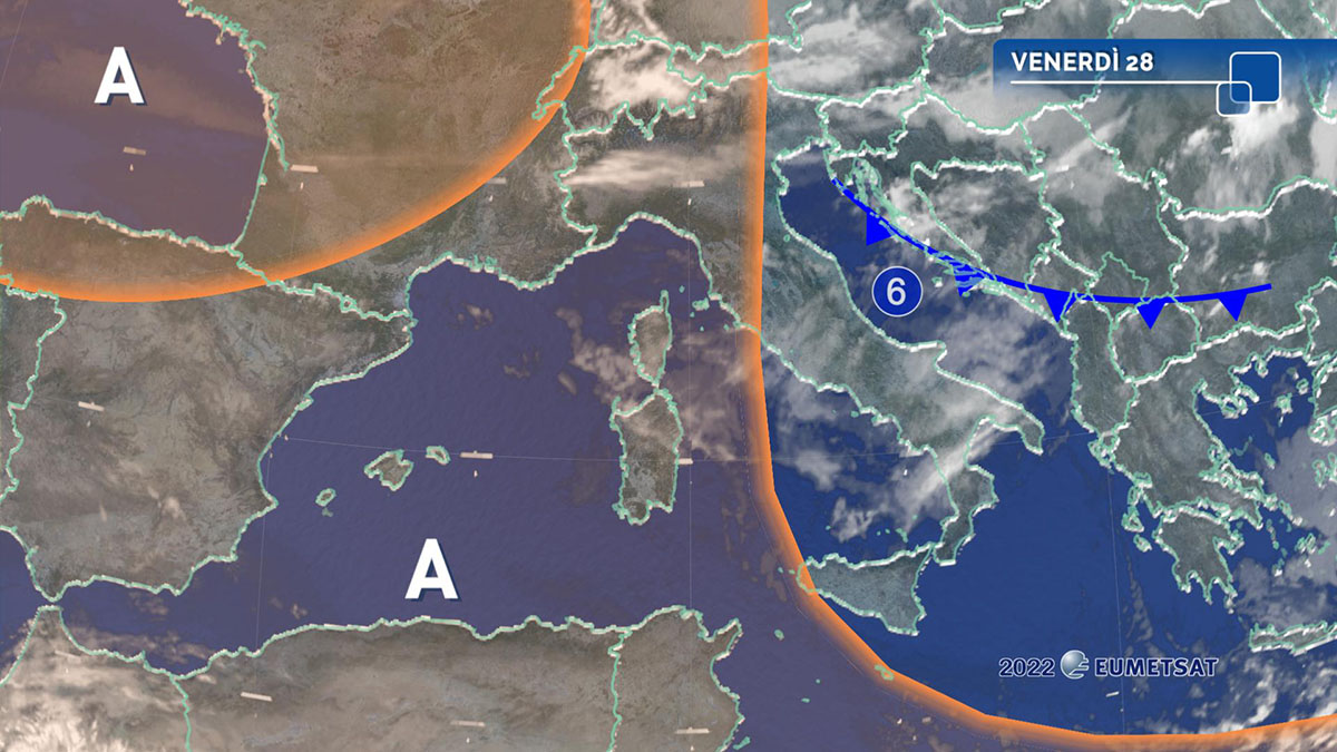 Alta pressione ancora protagonista sul nostro Paese, soltanto in temporanea attenuazione tra la seconda parte della giornata odierna e sabato mattina, per la discesa di un veloce fronte freddo in arrivo dal Nord Atlantico (perturbazione n. 6 di gennaio), che investirà principalmente le regioni centrali adriatiche ed il Sud. Nel Nord Italia, che in queste condizioni di correnti settentrionali risulta protetto dall’arco alpino, il passaggio del fronte non avrà effetti in termini di precipitazioni, la cui quasi totale assenza da diverse settimane, soprattutto al Nord-Ovest, sta causando un grave episodio di siccità: lo conferma l’eccezionale scarsità dell’innevamento sulle nostre Alpi, anche a quote di media e alta montagna.