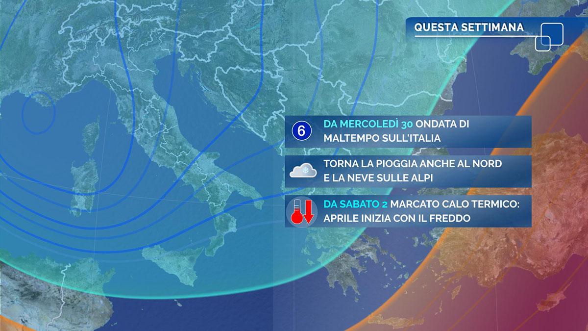 La debole perturbazione giunta nel week-end al Centro-Sud determina ancora per oggi la presenza di nuvole e qualche pioggia residua al Sud, con possibili episodi di instabilità nell’interno della Sicilia, in esaurimento in serata. Per il resto l’inizio della settimana è all’insegna di un tempo prevalentemente stabile e di un clima pienamente primaverile con temperature anche sopra le medie, specie al Nord. Domani è atteso il graduale arrivo da ovest di nubi, per lo più alte e innocue. Si tratta dell’avanguardia di una perturbazione (la n. 6 di marzo) in arrivo tra la notte di martedì e mercoledì che – affermano i meteorologi di Meteo Expert -, dovrebbe segnare l’inizio di un cambiamento significativo nella circolazione. Anche i giorni successivi infatti saranno caratterizzati da condizioni di variabilità, altre possibili fasi perturbate e un calo termico, in particolare da venerdì. Al di là dei particolari, che mostrano ancora margini di incertezza, sembra finalmente possibile l’arrivo di alcune piogge al Nord e di alcune nevicate sulle Alpi. In linea di massima i fenomeni in arrivo saranno lontani dal poter colmare l’enorme deficit idrico accumulato in tutto l’inverno ma per lo meno potranno interrompere la siccità estrema che stiamo vivendo.