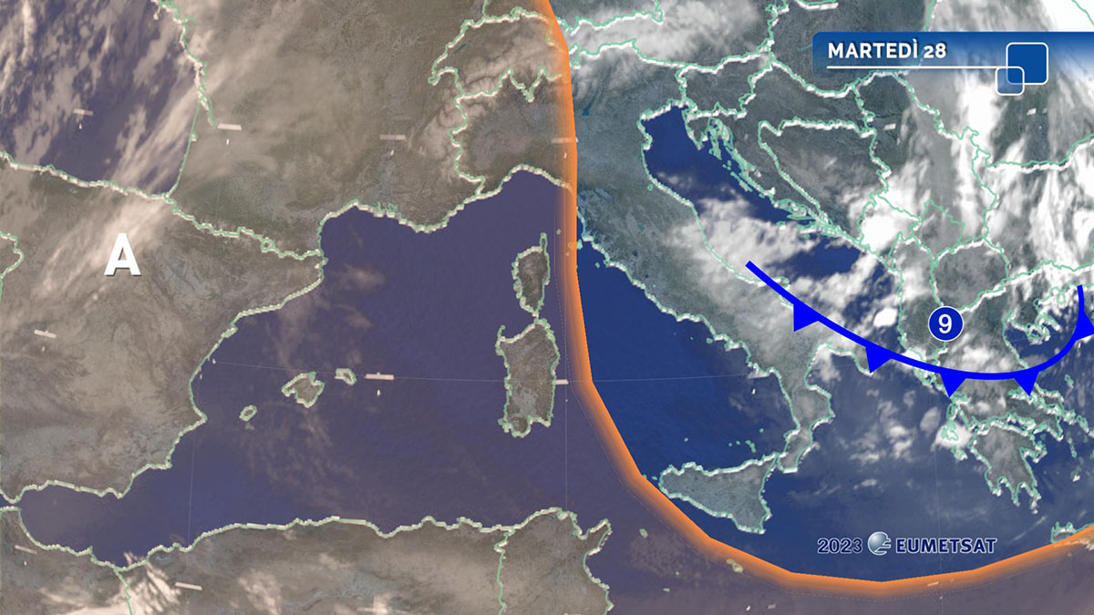 Da domani i venti si disporranno da sudovest e gradualmente apporteranno aria di nuovo mite. Nel letto di correnti occidentali in quota piuttosto veloci una debole perturbazione atlantica giovedì lambirà il nord Italia.