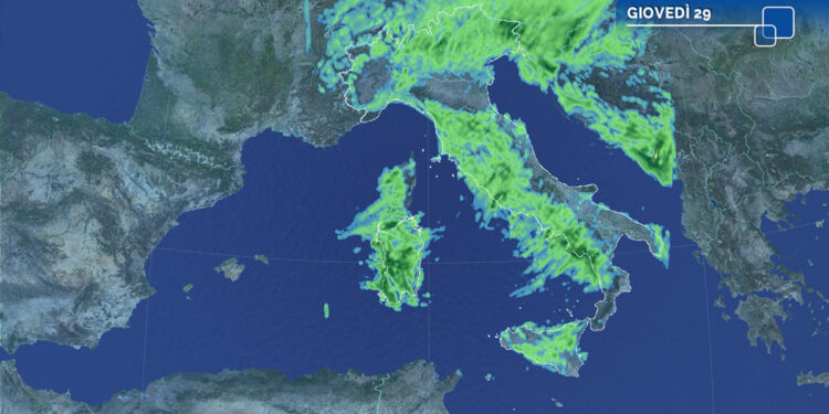 Su Puglia, Basilicata, Calabria e Sicilia tempo in prevalenza ancora soleggiato, con alcune velature e qualche banco nuvoloso a bassa quota, dal pomeriggio, lungo il versante ionico, nel sud della Sicilia. Dalla sera tendenza a peggioramento sull’isola, con l’arrivo di piogge e temporali. Nel resto del Paese cielo da nuvoloso a coperto, salvo schiarite lungo le coste centrali adriatiche. Precipitazioni più probabili e diffuse, sin dalle prime ore del giorno, in Triveneto, su Liguria, regioni tirreniche fino alla Campania e in Sardegna, con rovesci e temporali, localmente intensi: non si escludono locali nubifragi. Piogge e rovesci sparsi in Lombardia, basso Piemonte, Emilia Romagna; temporali in Umbria e Marche. In serata precipitazioni in attenuazione al Nord, più insistenti sule versante tirrenico del Centro e in Sicilia.