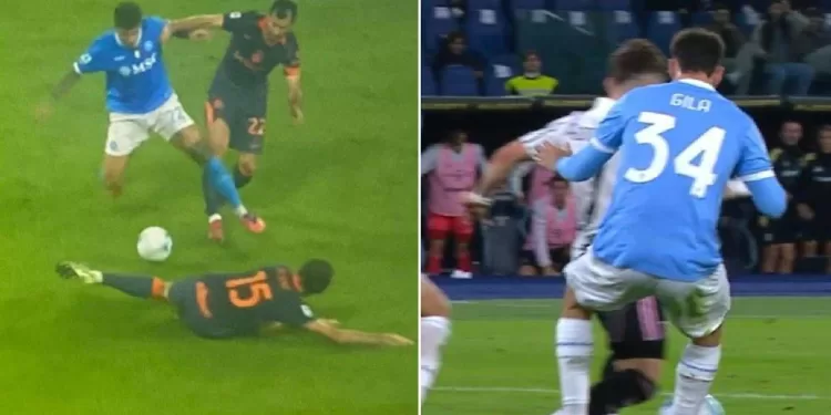In Lazio-Juve, “l’intervento su Conceicao in Lazio-Juve? Non sono stati particolarmente scrupolosi anche se qui Meraviglia fa un ragionamento superficiale sullo step on foot, perché non tutti gli step on foot sono calci di rigore, voglio sottolinearlo in maniera chiara, serve uno scontro vero per il pallone e qui c’è un giocatore che cerca l’avversario, c’è lo step on foot chiaro e ci saremmo aspettati l’on-field review e il calcio di rigore. È un caso in cui un giocatore va a cercare un avversario, lo trova e lo trova in maniera scorretta, è paragonabile a uno sgambetto”.