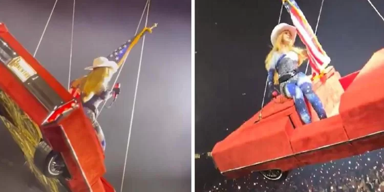 This is NOT a malfunction—Beyoncé is performing a piece of poetic performance art symbolizing the decline of America. The tipping red car acts as a metaphor for momentum and the nation’s rapid descent, speeding toward profound reckoning with its own fatepic.twitter.com/U5rJRe8PwO