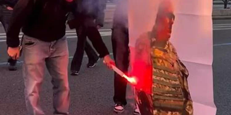 (Adnkronos) – Una bandiera statunitense e un manifesto raffigurante il ministro della Difesa Guido Crosetto con la scritta ‘Non ci arruoliamo’ sono stati bruciati durante il corteo di Roma “contro l’economia di guerra e per la Palestina libera”. L’azione da parte di alcuni esponenti del movimento studentesco universitario Cambiare Rotta, che hanno postato le immagini sul profilo social del collettivo.