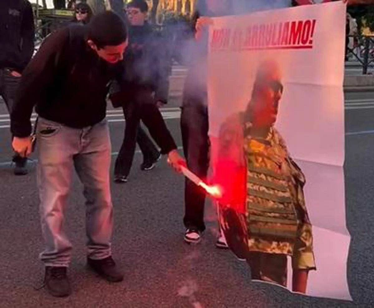 (Adnkronos) – Una bandiera statunitense e un manifesto raffigurante il ministro della Difesa Guido Crosetto con la scritta ‘Non ci arruoliamo’ sono stati bruciati durante il corteo di Roma “contro l’economia di guerra e per la Palestina libera”. L’azione da parte di alcuni esponenti del movimento studentesco universitario Cambiare Rotta, che hanno postato le immagini sul profilo social del collettivo.
