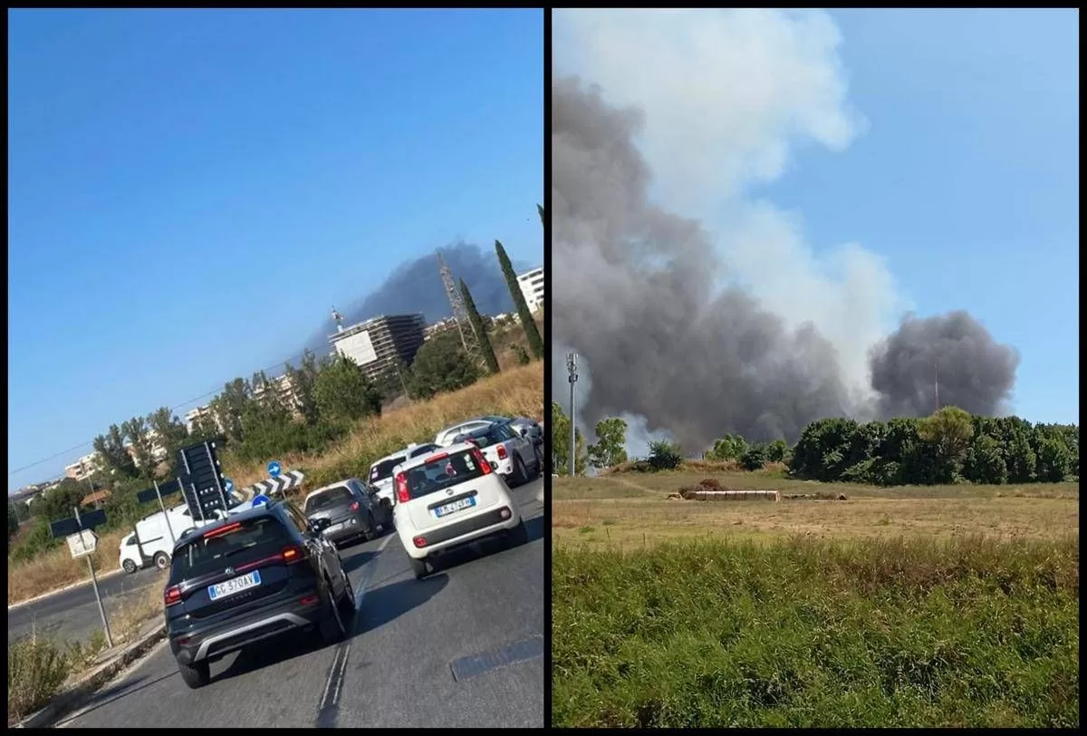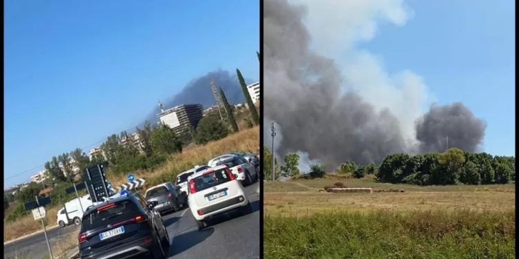 Roma, vasto incendio a Piana del Sole: fiamme verso l’aeroporto di Fiumicino