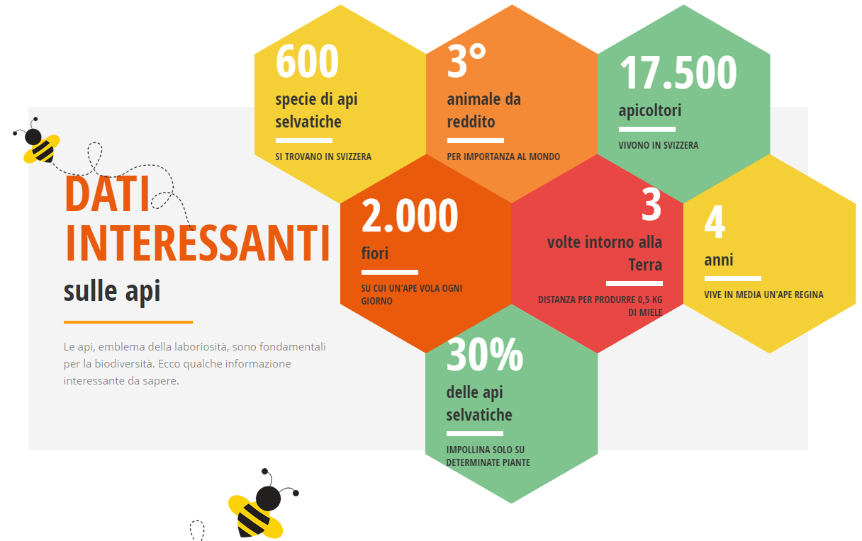Oltre agli elementi interattivi, nella pagina tematica vengono presentati numerosi fatti sulle api, che meritano di essere conosciuti. Alcuni di questi sono: