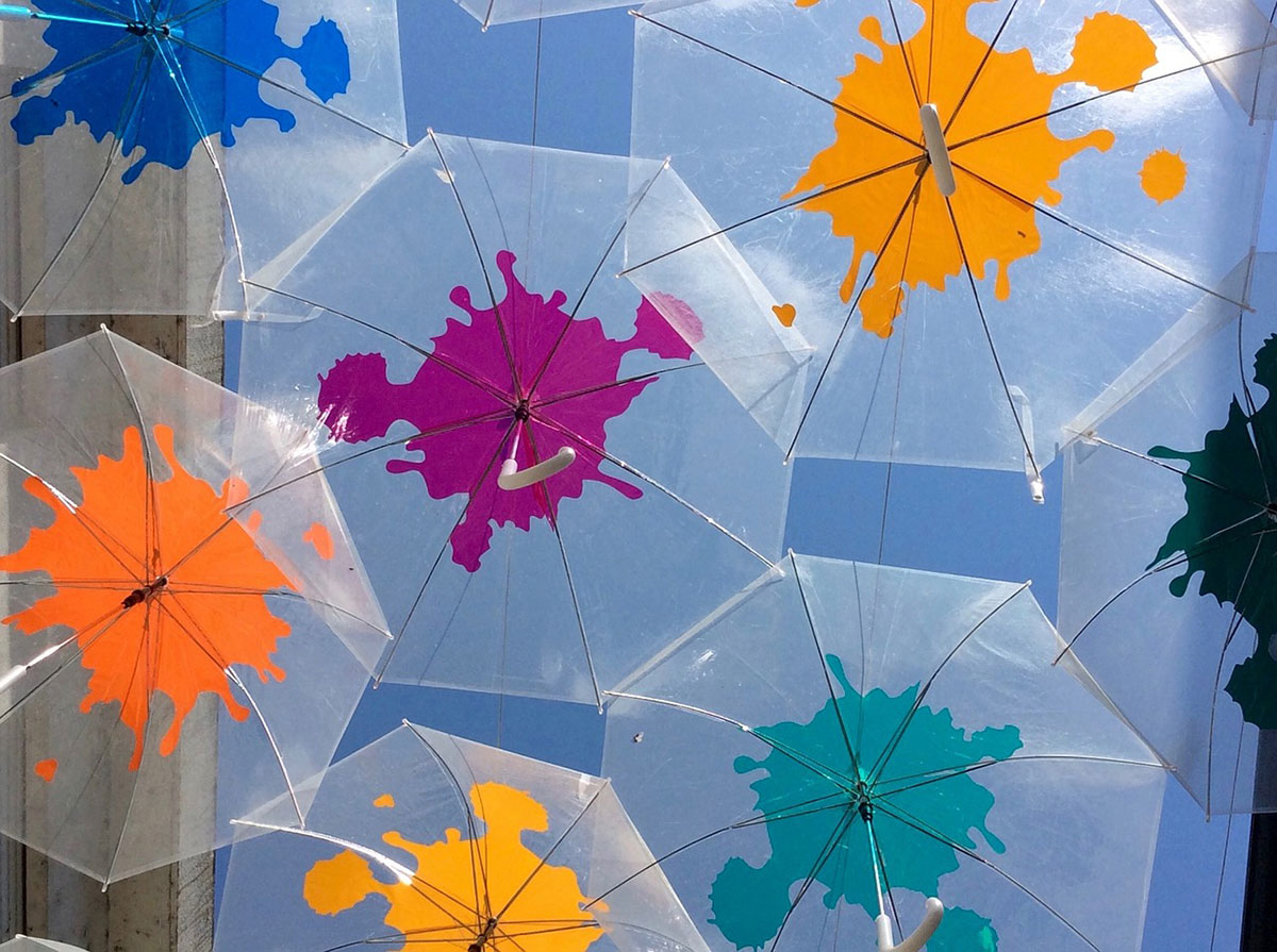 Più innovativa l’arte a Shanghai, dove gli ombrelli rossi diventano una gigantesca sfera o in Grecia, dove la trasparenza della scultura di ombrelli in una strada di Salonicco riflette la luce colorata dei faretti o quella azzurra del cielo.