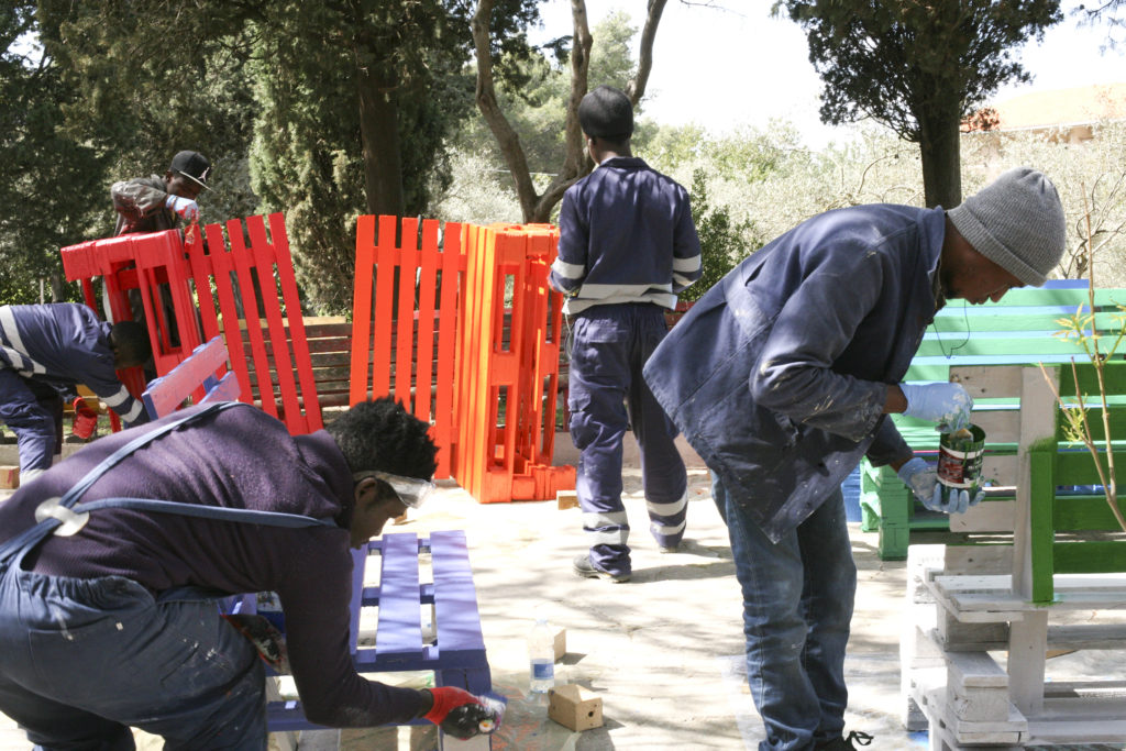 Nel dicembre 2015 Habitat Immaginari – formula nata all’interno della storica compagnia teatrale sassarese Theatre en vol per il coinvolgimento della comunità nella reinterpretazione dei luoghi pubblici – realizzava il progetto intitolato “La panchina ospitale”. Si trattava di un Laboratorio di costruzione e decorazione di arredi urbani realizzati con materiali di recupero.