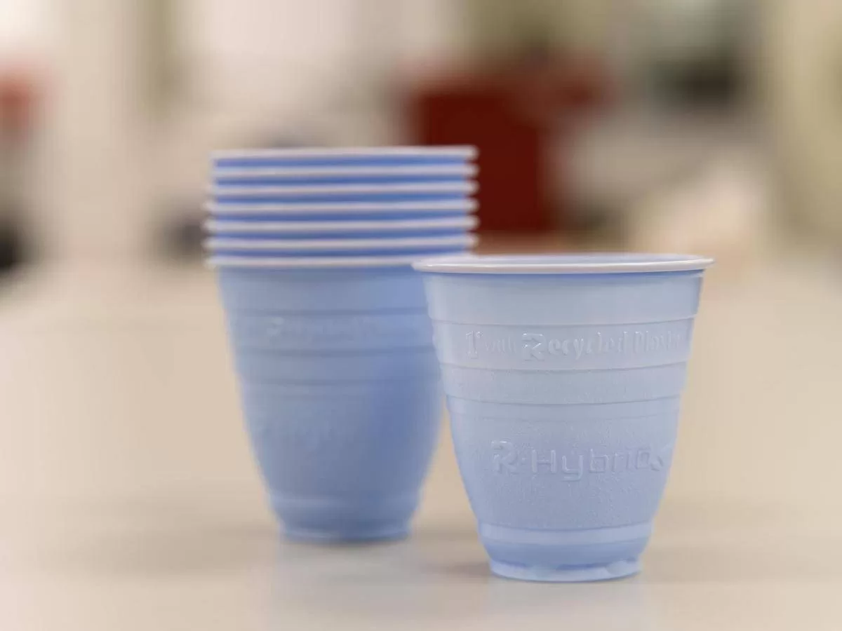 R-Hybrid SKY si integra nel circuito RiVending, promosso da Confida e Corepla, permettendo il riciclo totale del bicchiere e la sua trasformazione in nuova materia prima. Nasce così il Cup2Cup, un ciclo virtuoso che supera il concetto di monouso e valorizza lo scarto.