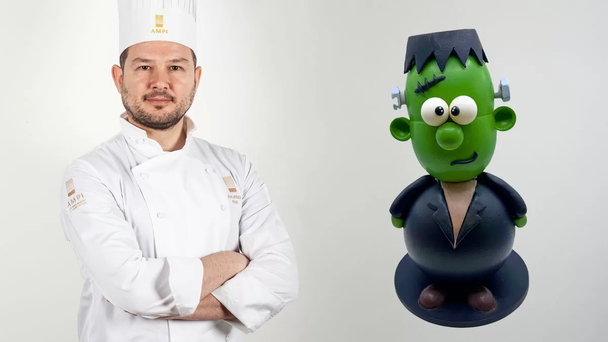 Con questa creazione, Maurizio Frau, Maître chocolatier di Cagliari, propone una lettura pop e affettuosa del celebre mostro, allontanandolo dall’immaginario della paura per trasformarlo in simbolo di un Halloween più leggero e ironico, dove la pasticceria diventa linguaggio artistico e mezzo di racconto.