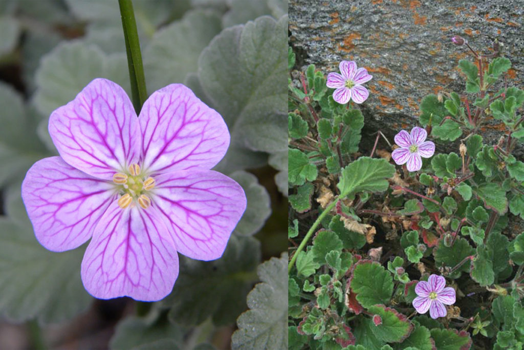 L’Erodium corsicum (Becco di gru corso, Erba de agullas, Frocchitteddas) è una piccola pianta perenne, dal portamento cespuglioso, della famiglia delle Geraniaceae. Le foglie sono caratterizzate da una densa peluria che le rende vellutate alla vista e al tatto.