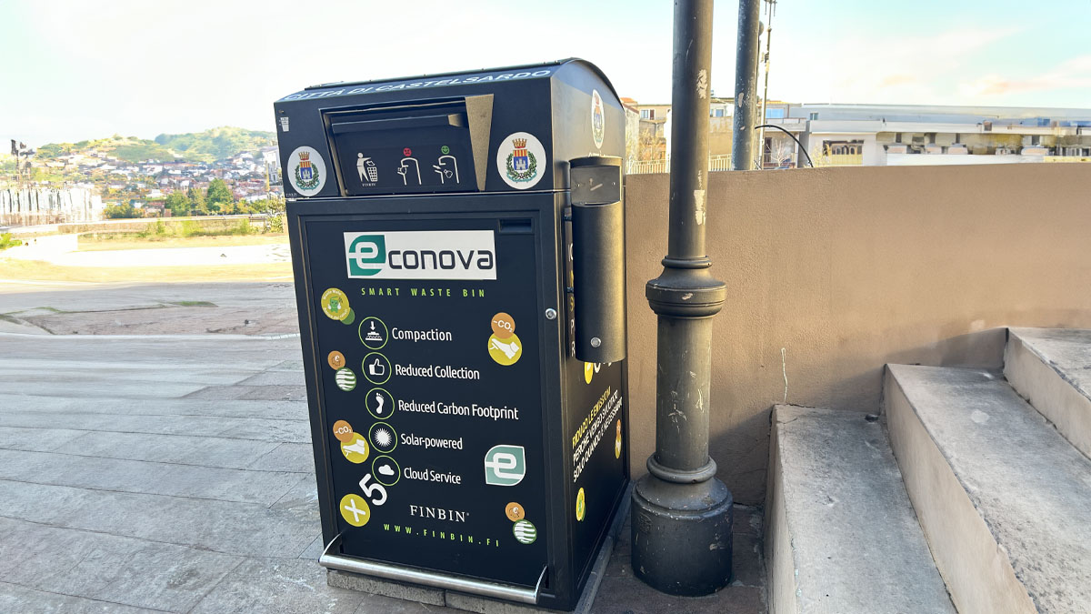Il cestino “intelligente”, espressamente dedicato alla raccolta dei cosiddetti rifiuti da passeggio, installato in via sperimentale ed in accordo con Econova, riduce la fuoriuscita di cattivi odori e impedisce l’apertura da parte di animali randagi. È dotato di un pedale integrato, una bocca di conferimento con maniglia ed un sensore a ultrasuoni integrato che rileva il livello di riempimento, e sarà attivo h24.