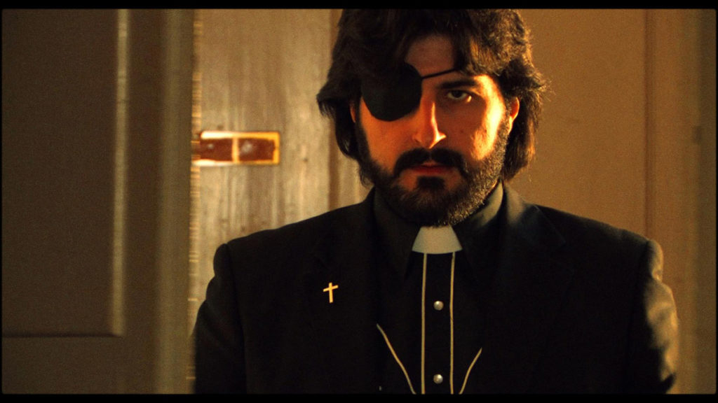 Il lavoro in cui tutti questi tasselli, queste “lamine di stile” forgiano una luccicante armatura filmica piacevolmente profanata da un dosato dripping pulp, è il sorprendente “No Redemption with… Don Mitraglia”, corto girato come finto trailer, ampiamente esaltato dal pubblico e degno di menzione speciale al Corti Vivi Film Fest 2014 di Soliera (MO), in cui seguiamo la risalita del semplice prete di campagna da umile vessato a bionico vendicatore, fino a veder letteralmente saltare in aria lo scranno papale. Qui lo stile personale di Domenico si esprime al meglio, ma non è da meno nelle collaborazioni con musicisti e altri videomaker (tutto visionabile sul canale YT Akentia Produktions).
