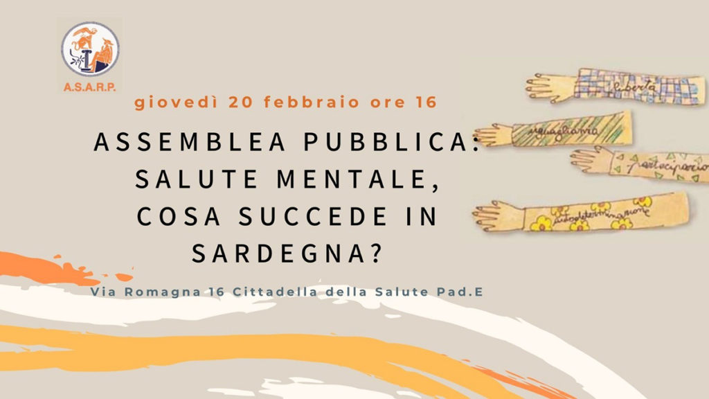 Un incontro aperto a tutti per affrontare il problema del ridimensionamento dei servizi territoriali di salute mentale in Sardegna: si terrà giovedì 20 febbraio alle ore 16 l’assemblea pubblica organizzata dall’ASARP (Associazione Sarda per l’Attuazione della Riforma Psichiatrica), presso la sede regionale in Via Romagna 16 c/o Cittadella della Salute Pad.E, Cagliari. Familiari e utilizzatori dei servizi di salute mentale rivendicano il diritto di avere servizi diffusi sul territorio, con risorse professionali e finanziarie necessarie, e di poter accedere a percorsi di cura orientati alla ripresa attraverso progetti individualizzati in linea con i principi cardine della riabilitazione/abilitazione (abitare, reddito, inclusione sociale) e secondo i bisogni reali di ciascuno. L’incontro nasce dall’esigenza delle parti sociali, delle organizzazioni di familiari e degli utenti di un confronto con le istituzioni, dalla necessità di ottenere delle risposte politiche e organizzative su tematiche che riguardano la violazione di norme e diritti costituzionalmente riconosciuti che non investono solo utilizzatori dei servizi di salute mentale e familiari, ma anche operatori, che hanno il diritto di lavorare in sicurezza all’interno di una organizzazione del servizio funzionale e con le risorse necessarie.