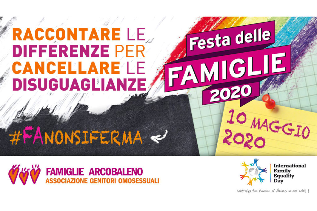 Le restrizioni causate dalla pandemia da Covid-19 non fermano la Festa delle Famiglie. Piazze, giardini e strade di tutta Italia si tingeranno ancora dei colori dell’arcobaleno come occasione di impegno politico e visibilità per tutte le famiglie a prescindere da come siano composte. Una manifestazione, ancorché virtuale, per denunciare anche il vuoto normativo che pesa sulle famiglie omogenitoriali.