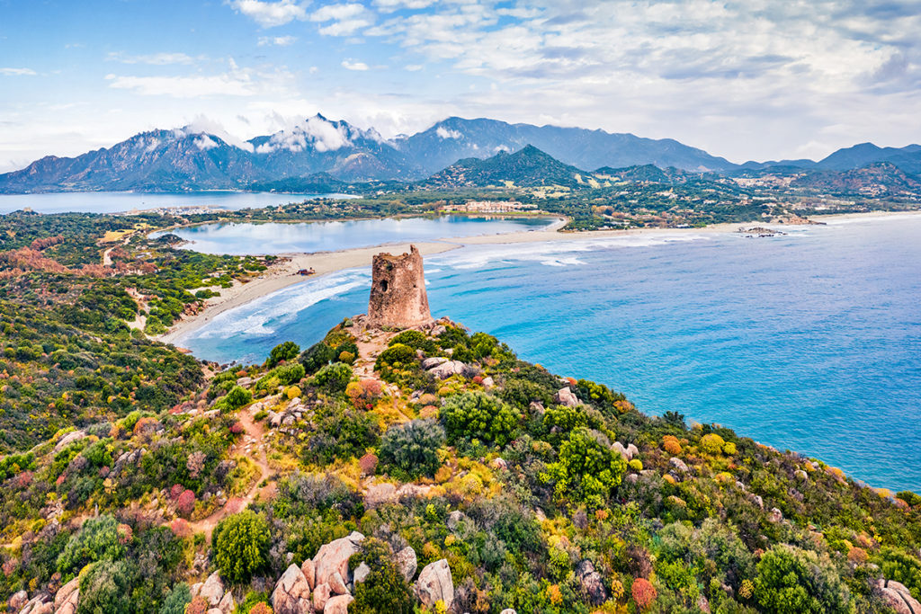 Risalendo verso nord, obbligatorie le tappe alle spiagge di Simius e di Is Traias dove colline erbose vanno assottigliandosi fino a diventare sabbia e a incontrarsi con il mare trasparente. Proseguendo troveremo altri due gioielli di bellezza spettacolare: le spiagge di Riu Trottu e di Manunzas, che fanno da contorno alla spiaggia di Punta Molentis, una delle mete più apprezzate da locali e turisti. Azzurro, verde, turchese e trasparenza del mare, bianco, rosa e avorio delle lingue di sabbia, verde e tutti i colori caldi della macchia mediterranea che si fondono per creare una visione da cartolina, se non da paradiso terrestre. Tutto questo è Punta Molentis, dal paesaggio inconfondibile dove la natura sembra trovare il massimo della sua espressione, dove fauna e flora trovano il giusto compromesso e si fondono in tutta la loro maestosità. E in questo paradiso di colori, profumi e fusioni, c’è spazio anche per l’uomo perché tutto il fascino del passato (su una collina alle spalle si trovano i resti di un nuraghe) si integra con l’evoluzione del presente (è possibile trovare numerosi servizi tra cui noleggio di barche, punti di ristoro e vendita di attrezzature balneari).